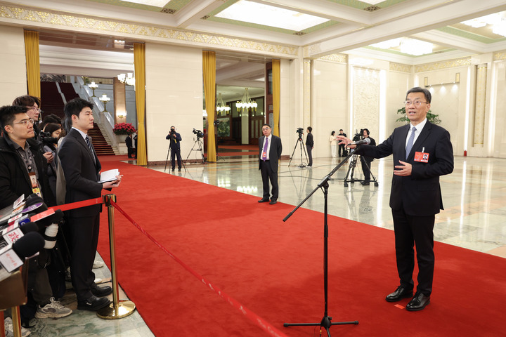 3月5日,第十四屆全國(guó)人民代表大會(huì)第三次會(huì)議首場(chǎng)“部長(zhǎng)通道”集中采訪活動(dòng)在北京人民大會(huì)堂舉行。這是教育部部長(zhǎng)懷進(jìn)鵬接受媒體采訪。新華社記者 呂帥 攝