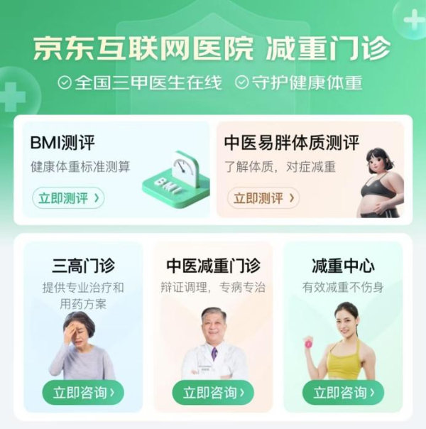 京東互聯(lián)網(wǎng)醫(yī)院內(nèi)分泌科全職醫(yī)生耿麗杰表示,肥胖還會增加患糖尿病等代謝性疾病、心血管疾病、呼吸系統(tǒng)疾病、脂肪肝等消化系統(tǒng)疾病等多種疾病的風(fēng)險,應(yīng)積極倡導(dǎo)“以患者為中心”的多學(xué)科協(xié)作診療模式,以減重核心制定個性化方案。此次全新推出的京東互聯(lián)網(wǎng)醫(yī)院減重門診,整合心血管內(nèi)科、消化內(nèi)科、內(nèi)分泌科、中醫(yī)科、營養(yǎng)科、兒科等多學(xué)科專業(yè)力量,可針對不同原因、不同類型的體重問題,打造全方位、個性化的專業(yè)診療方案,確保減重過程科學(xué)安全,還能實現(xiàn)減重與慢性病管理同步進(jìn)行;減重門診的中醫(yī)減重服務(wù),結(jié)合中醫(yī)辯證調(diào)理,為用戶提供了更多元化的減重選擇。