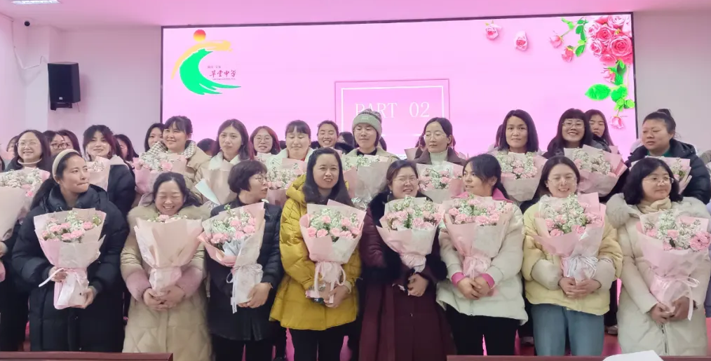 隨后,該校行政和男教師為全體女教師獻(xiàn)上鮮花,表達(dá)節(jié)日的祝福。一束束芬芳的鮮花映襯著一張張燦爛的笑臉,現(xiàn)場(chǎng)洋溢著溫馨歡樂(lè)的氣氛。