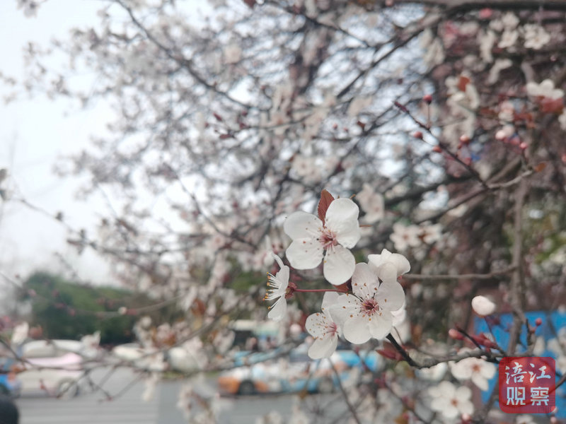隨著氣溫回升,綿陽安州城區(qū)內的紫葉李悄然迎來了一年中最絢爛的時刻,它們競相綻放、繁花似錦,宛如一片片粉白色云霞,為這座城市披上了一襲迷人的春日盛裝。