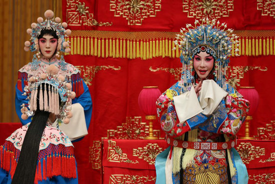3月16日,演員在京劇《龍鳳呈祥》中表演。(天津中華劇院供圖)