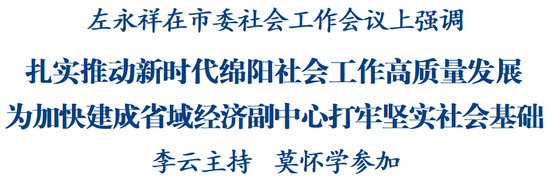 綿陽新聞網(wǎng)訊 3月18日,市委社會工作會議召開,副省長、市委書記左永祥出席會議并講話。他強調(diào),要深入學(xué)習(xí)貫徹習(xí)近平總書記關(guān)于社會工作的重要論述和重要指示精神,全面落實中央和省委社會工作會議部署要求,堅定不移走中國特色社會主義社會治理之路,不斷夯實基層治理基礎(chǔ),扎實推動新時代綿陽社會工作高質(zhì)量發(fā)展,為加快建成省域經(jīng)濟(jì)副中心打牢堅實社會基礎(chǔ)。
