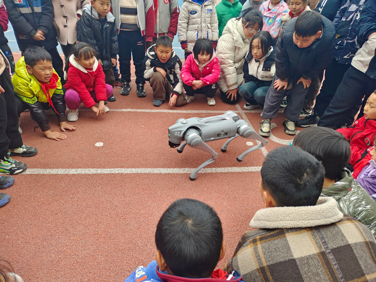 機(jī)器狗的表演帶來了高潮,只見機(jī)器狗在工作人員的操控下,一會(huì)兒舞蹈,一會(huì)兒疾跑,一會(huì)兒跳躍,那“賣萌”姿態(tài)給孩子們帶來歡聲笑語。