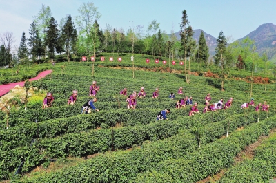 北川羌族自治縣石椅村的村民正在采摘春茶。(北川宣傳部供圖)