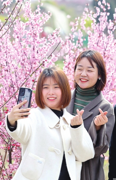 3月14日,涪城區(qū)“五朵金花”系列活動(dòng)之豐谷鎮(zhèn)第四屆桃花文旅消費(fèi)季暨豐谷鎮(zhèn)桃花旅游節(jié)開(kāi)幕。圖為游客在賞花?! ?記者 陳冬冬 攝)