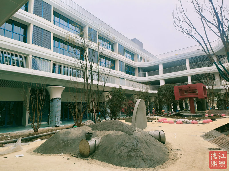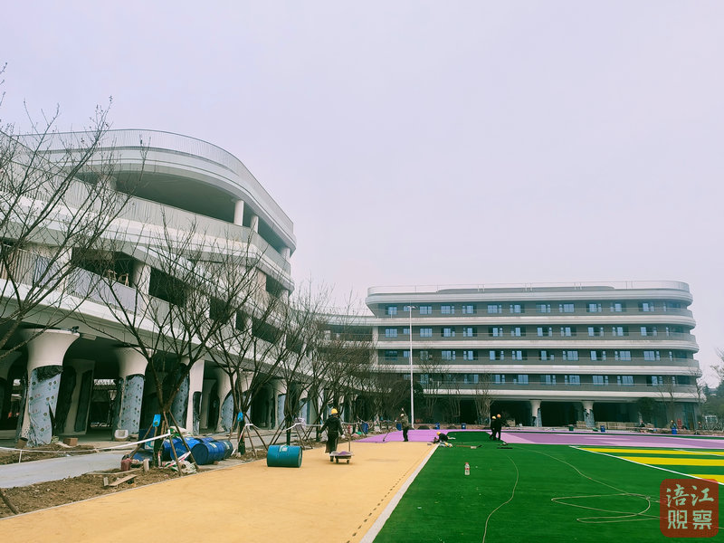 走進(jìn)學(xué)校,白紫相間的教學(xué)樓便映入眼前,操場已是綠意盎然,教學(xué)樓間的公共區(qū)域雛形已現(xiàn),靈性與活力撲面而來。“目前,學(xué)校主體建筑已經(jīng)全面竣工,室內(nèi)裝修在年前已經(jīng)全面完成,教學(xué)設(shè)施、儀器設(shè)備已經(jīng)全部就位。”陳梅說,目前正在進(jìn)行消防通道建設(shè)和綠化道打造。