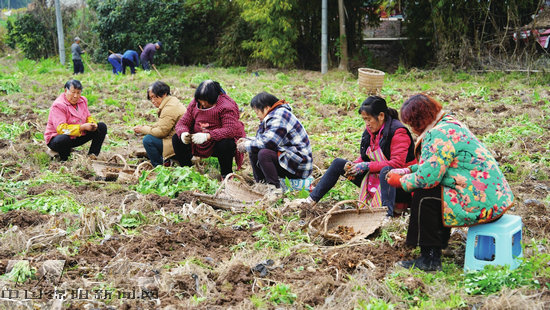 “大家清理的時候小心點,這是上好的藥材,不要把里面的黃色藥粉蹭掉了。”姜黃地里,村民們搶抓晴好天氣采收姜黃。他們熟練地?fù)]動著農(nóng)具,隨著泥土的翻動,一壟壟飽滿的姜黃破土而出。村民們小心地抖落姜黃上附著的泥土,去除多余根莖,再放進(jìn)筐里。不一會兒,一輛農(nóng)用車就被裝得滿滿當(dāng)當(dāng)。