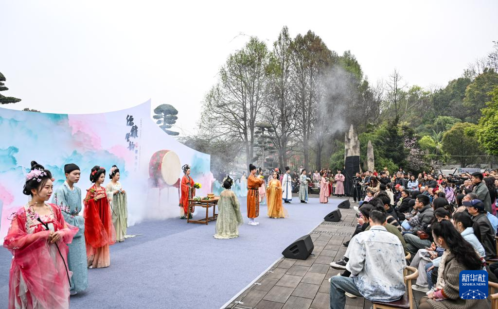 這是3月22日在重慶璧山秀湖公園拍攝的“儒雅璧韻·璧玉唐禮”傳統(tǒng)文化禮儀展示活動(dòng)現(xiàn)場(chǎng)。