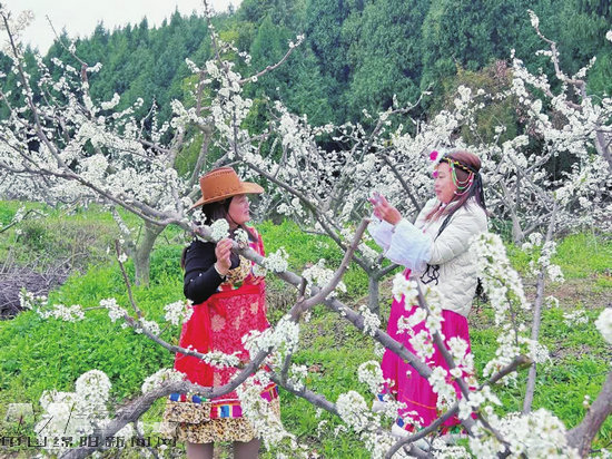 新橋鎮(zhèn)高意村李花迎來了綻放,吸引眾多游客前來賞花、拍照。