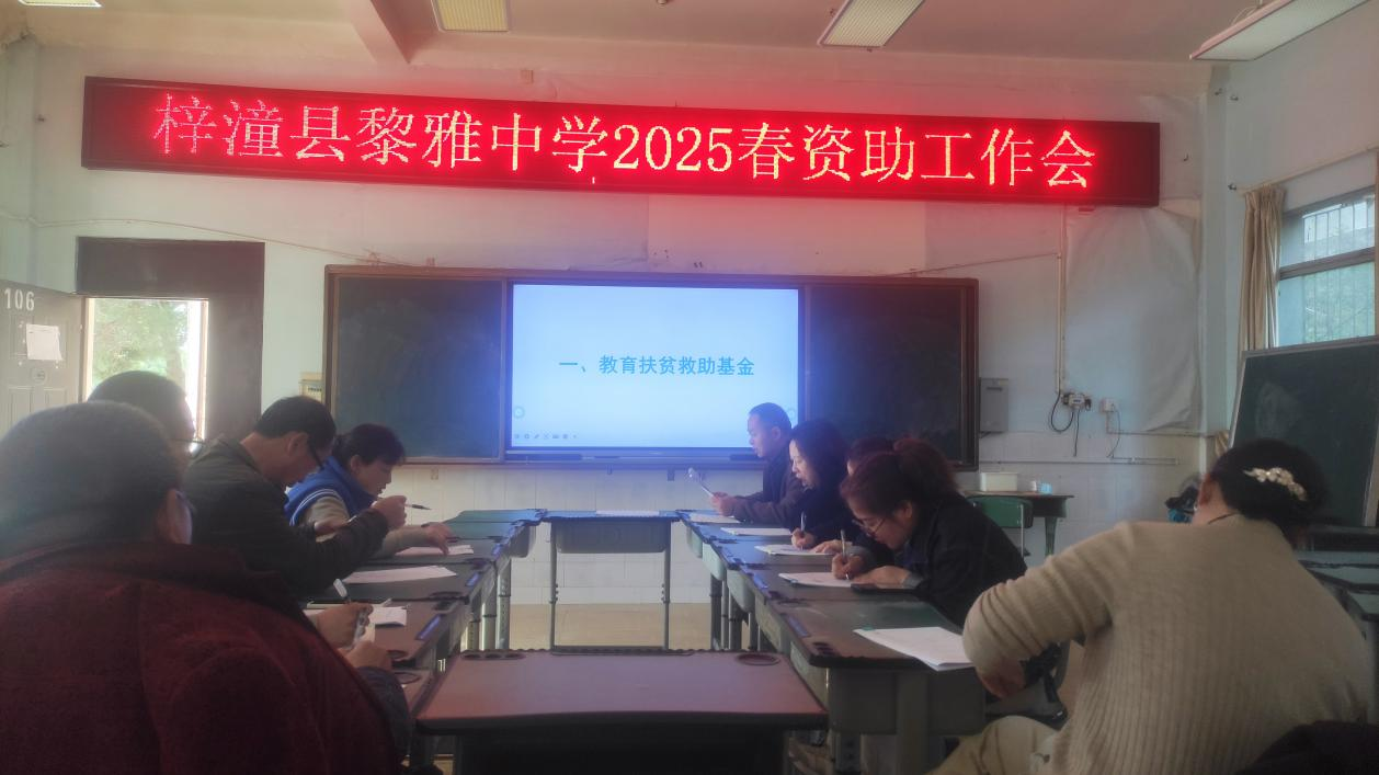 2025年初春,梓潼縣黎雅中學(xué)召開了以“資助政策深鉆研,育人路上行致遠(yuǎn)”為主題的2025年春季學(xué)期資助工作專項(xiàng)會議。會議由校總務(wù)處牽頭,全體班主任及資助工作教師齊聚一堂,共同研讀政策細(xì)則。