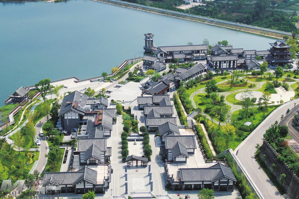 漫步450米長的仿古主街,腳下青石板路蜿蜒,兩側(cè)15座川西北民居錯落分布。翹角屋檐與雕花窗欞交相輝映,散發(fā)著濃郁的科舉文化氣息。踏上水街棧橋,40萬平方米的水域波光粼粼,倒映著白墻黛瓦。345米的蜿蜒水街與600米棧橋串聯(lián)起3棟濱水建筑。在親水碼頭,文昌帝君執(zhí)筆點狀元的壁畫栩栩如生,盡顯文化與自然交融之美。