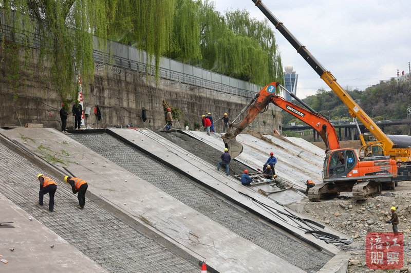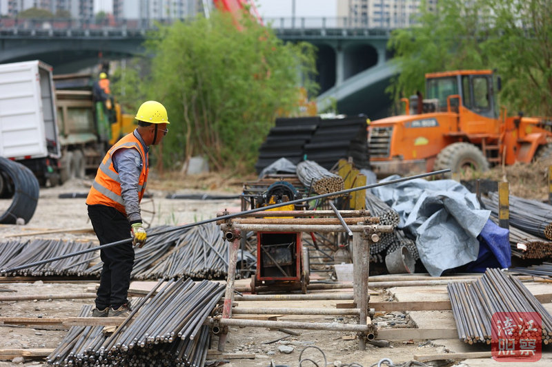 3月30日,記者來到綿陽市濱河南路道路綜合改造工程(安昌橋至白衣庵)南河閘壩改造項目施工現(xiàn)場看到,這里機械聲轟鳴,工人們有序施工,一片繁忙景象。