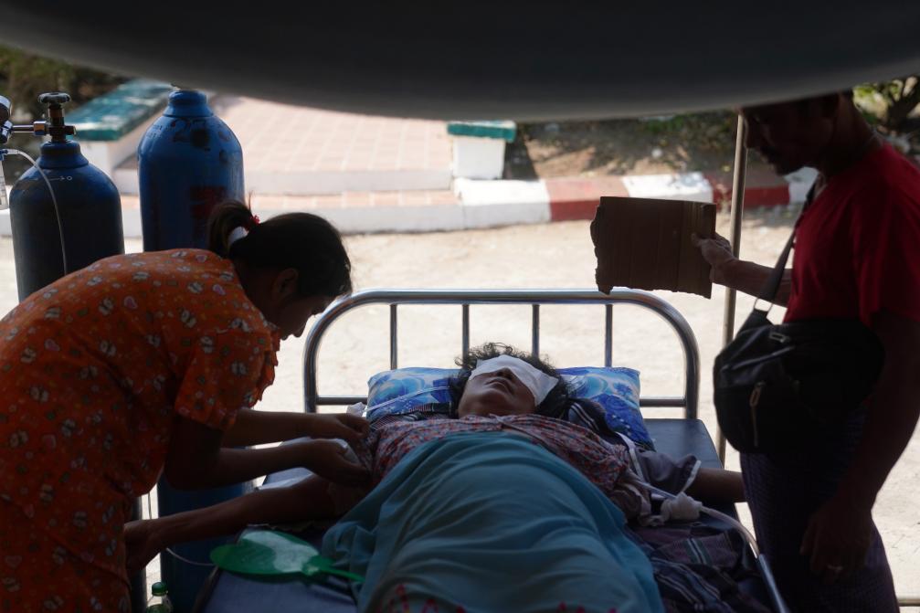 3月31日,在緬甸首都內比都,地震傷員在一家醫(yī)院空地搭建的帳篷中接受治療。新華社發(fā)(王申攝)