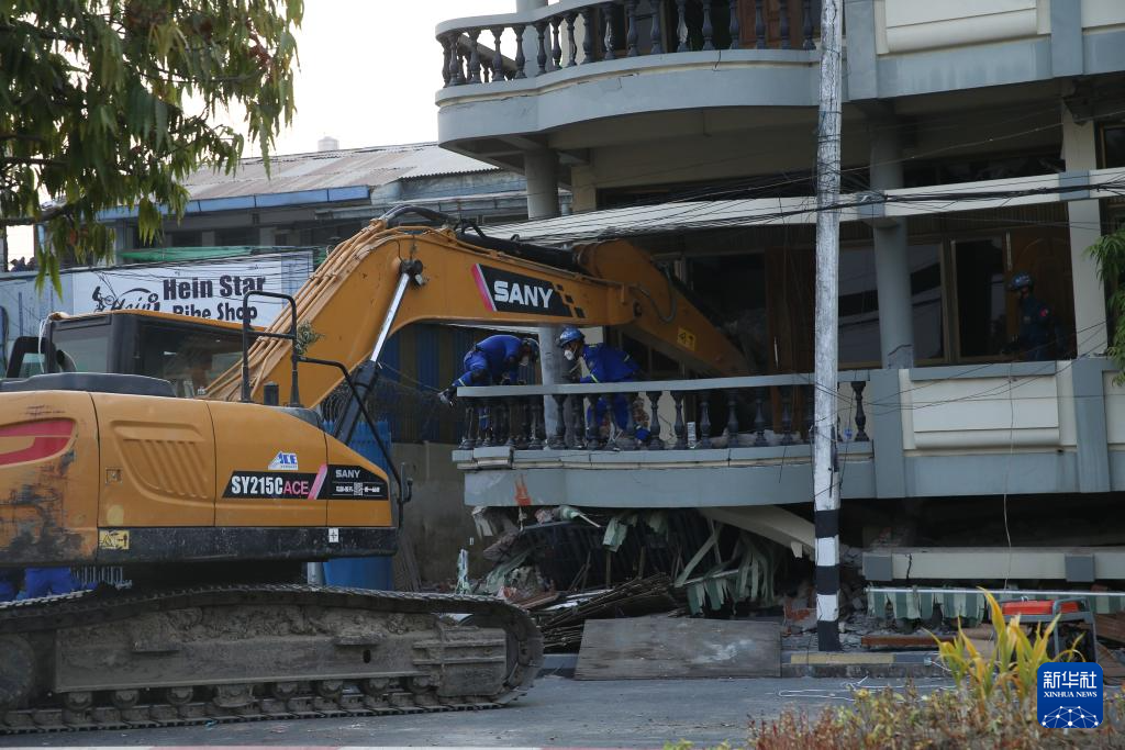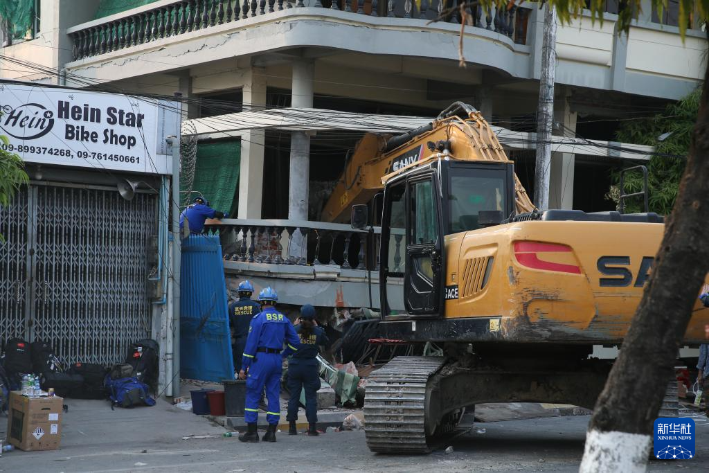 4月1日,在緬甸曼德勒,中國藍(lán)天救援隊(duì)開展救援。新華社發(fā)(苗覺梭攝)