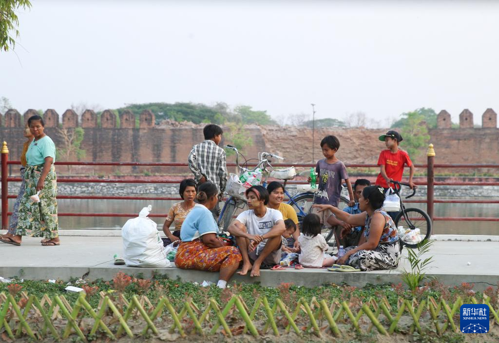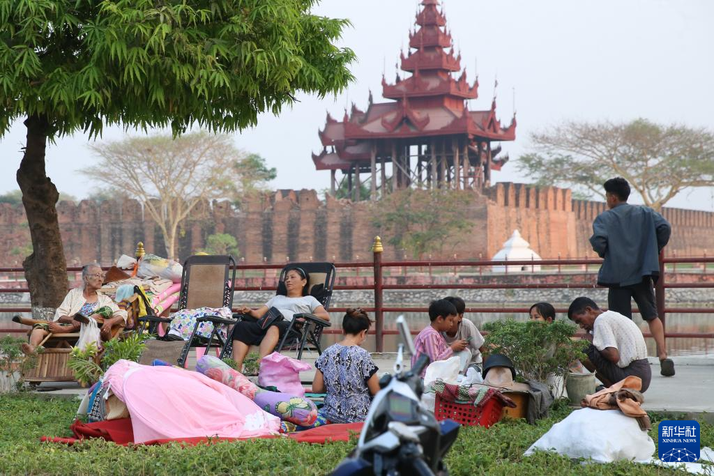 4月1日,在緬甸曼德勒,受災(zāi)民眾在曼德勒皇宮附近避難。新華社發(fā)(苗覺梭攝)