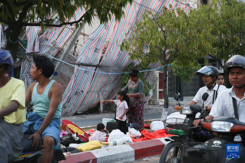 4月1日,在緬甸曼德勒,受災(zāi)民眾在街頭避難。新華社發(fā)(苗覺梭攝)