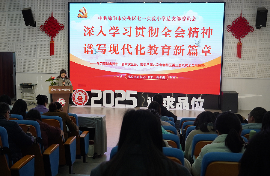近日,安州區(qū)“七一”實驗小學(xué)組織全體黨員開展了以“聚力教育高質(zhì)量發(fā)展”為主題的2025年春專題黨課學(xué)習(xí)活動,深入學(xué)習(xí)貫徹省委十二屆六次全會、市委八屆九次全會及區(qū)委三屆八次全會精神。