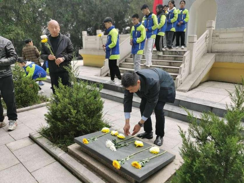 祭奠儀式結(jié)束后,師生們懷著虔誠之心擦拭墓碑、敬獻白菊。九年級學生任宏宇在擦拭烈士墓碑時輕聲說:"每一道刻痕都是先烈的勛章,每一片落葉都在訴說他們的故事。我要把這種精神化作前行的動力,讓青春在奮斗中綻放光芒。"