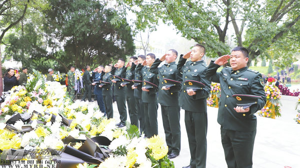 現(xiàn)役軍人代表向烈士敬禮