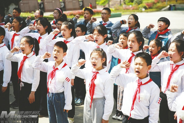 成綿路小學(xué)的學(xué)生重溫入隊(duì)誓言