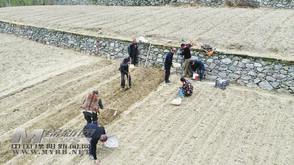 在北川片口鄉(xiāng)保爾村的魔芋種植地里,村民在播種魔芋。