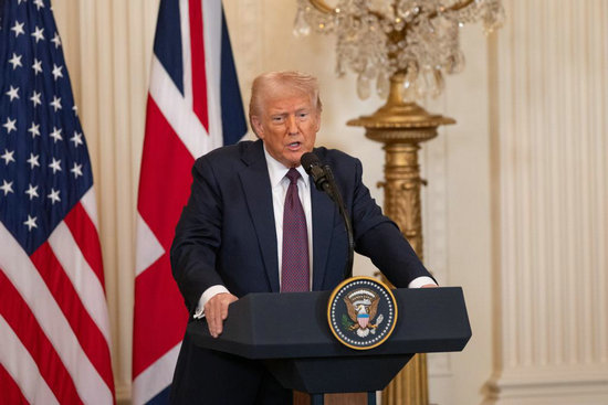 3月27日,美國(guó)總統(tǒng)特朗普在華盛頓白宮出席記者會(huì)。新華社記者胡友松攝