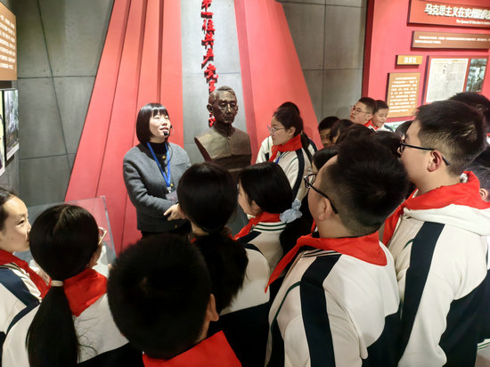 在革命歷史廳,師生們駐足聆聽(tīng)安州區(qū)第一位共產(chǎn)黨員沙汀的革命故事,感受他在白色恐怖下堅(jiān)持斗爭(zhēng)、傳播革命火種的堅(jiān)定信仰。