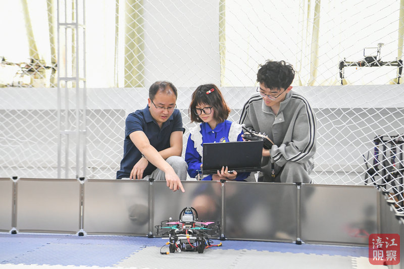 另一邊,在特殊環(huán)境機器?技術四川省重點實驗室的動捕實驗室內,研究人員霍建文正與西南科技大學通信專業(yè)大三學生張鑫月調試飛控算法,旁邊的隊友正在模擬器里驗證路徑規(guī)劃模型,搭載了“異構飛控智航系統(tǒng)”的無人機再次迎來了試飛。