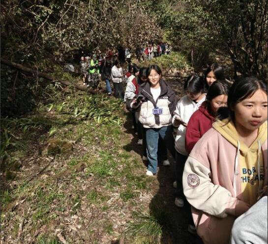 一到營地,師生們就開始挑戰(zhàn)徒步登山。蜿蜒陡峭的山路考驗著大家的體能和心智,可沒人退縮,師生相互扶持激勵,在攀登中鍛煉堅韌不拔的意志。生物指導老師科普了當?shù)厣锏亩鄻有孕誀?,如何保護生態(tài)環(huán)境,以及踐行綠水青山就是金山銀山的理念所取得的成績,大家的生態(tài)文明理念、自然保護意識進一步增強。
