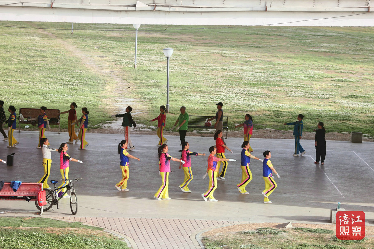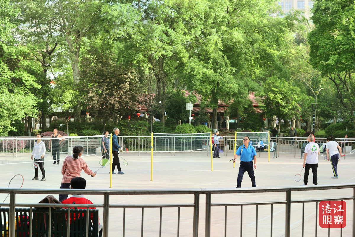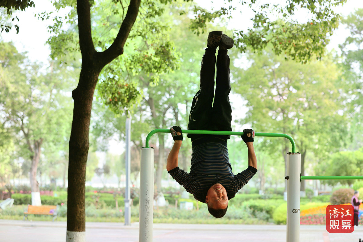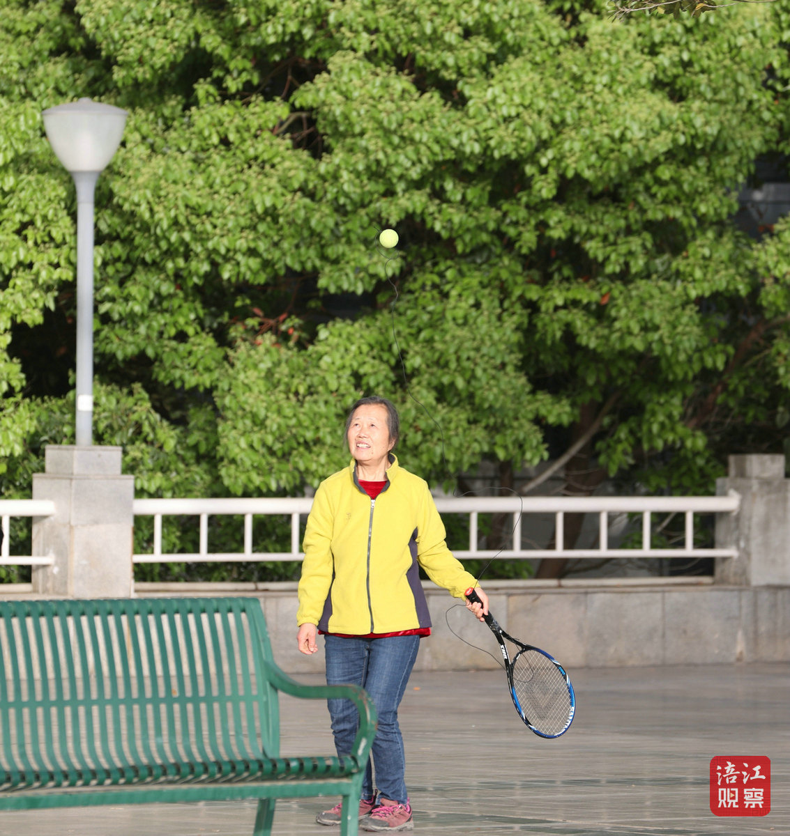 公園里,打太極拳的老人緩緩?fù)普?/p>