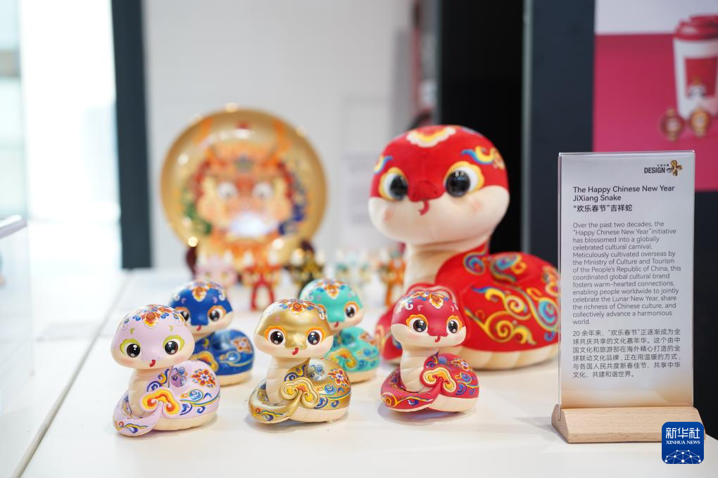 這是4月7日在意大利米蘭設(shè)計周中國周文創(chuàng)中國精品展區(qū)拍攝的生肖蛇玩偶。新華社發(fā)(米蘭設(shè)計周中國周主辦方供圖)