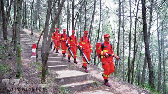 4月15日清晨,鹽亭縣森林草原專業(yè)撲火隊班長杜元帥和隊員們來到高山公園,沿著路線開展森林防火巡查,他們每天需巡查山林33.3平方公里,確保高山公園沿線森林防火安全。