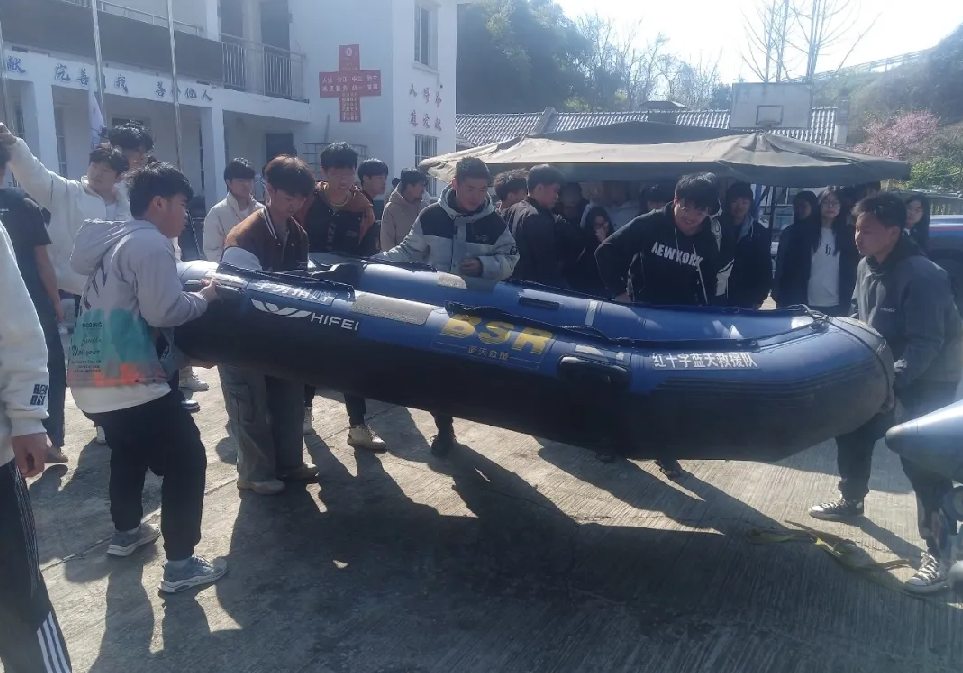水域救援環(huán)節(jié)更是干貨滿滿。面對(duì)不同水域環(huán)境,浮力馬甲、繩索救援裝備的選擇大有學(xué)問。隊(duì)員一邊講解,一邊指導(dǎo)同學(xué)們練習(xí)高空繩索打結(jié)、速降等垂直救援技能,同學(xué)們?nèi)褙炞?,力求掌握每一個(gè)動(dòng)作要領(lǐng)。此外,無人機(jī)在夜間搜救中的獨(dú)特優(yōu)勢(shì)、橡皮艇組裝及翻舟自救的水域協(xié)作技巧也一一呈現(xiàn),拓寬了同學(xué)們的救援視野。