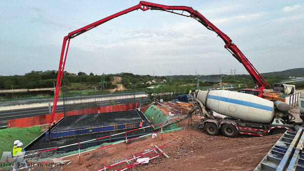 綿陽(yáng)新聞網(wǎng)訊 近日,綿遂內(nèi)鐵路項(xiàng)目牌坊灣特大橋跨成綿蒼巴高速連續(xù)梁主墩承臺(tái)澆筑順利完成。