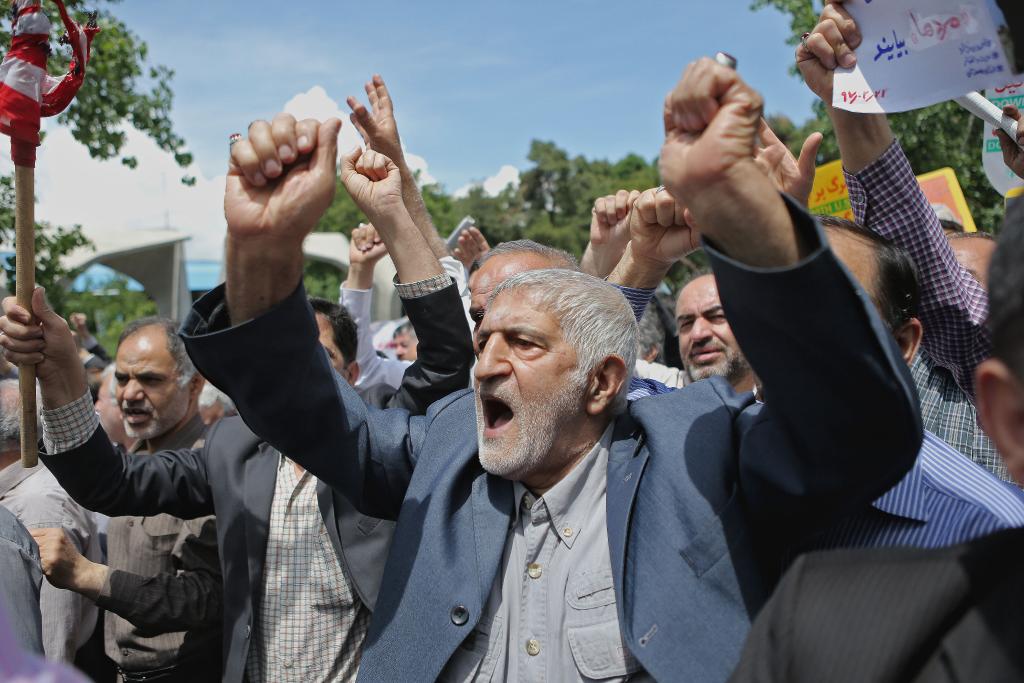 2018年5月11日,在伊朗首都德黑蘭,民眾抗議美國退出伊核協(xié)議。新華社發(fā)(哈拉比薩茲攝)