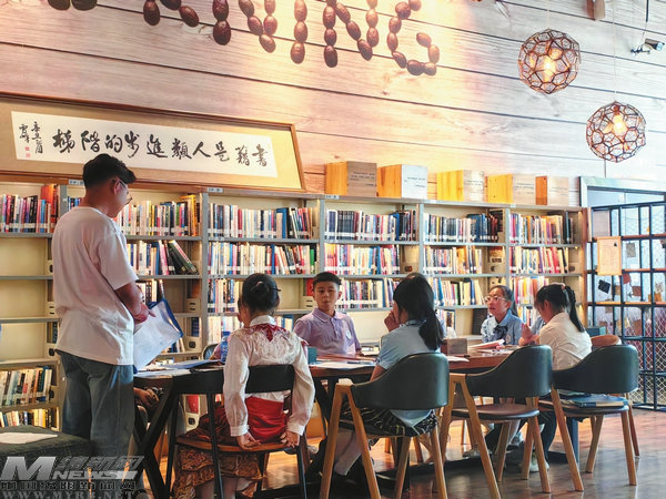 學生在中環(huán)悅影繪書吧開展閱讀活動