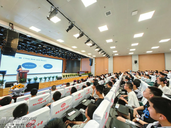 在當天的活動中,廣東廣播電視臺首席記者、廣東衛(wèi)視《絲路匯客廳》欄目制片人謝一菲受邀作《“一帶一路”故事讓世界聽到中國、看見中國、愛上中國》主題演講,分享她和團隊歷時6年創(chuàng)作的《我們走在絲路上》。6年間,她和團隊走訪了國內外70多個城市,尋訪200多組人物,將42個精彩故事匯編成書。演講中,她結合自身經歷,通過視頻、故事、圖片等形式,生動講述書中故事,并以互動問答的方式,結合時事熱點向學生們普及“一帶一路”知識。