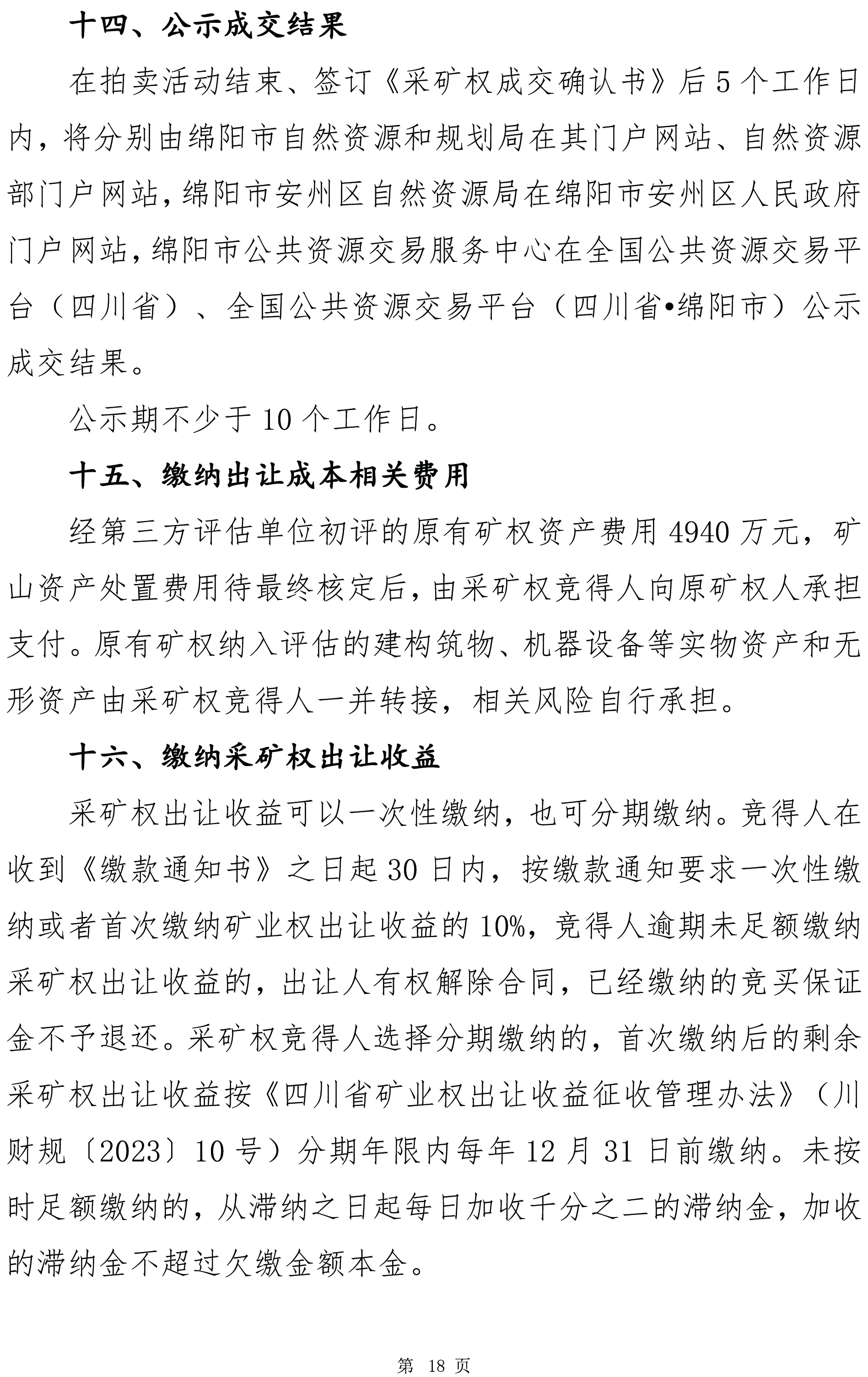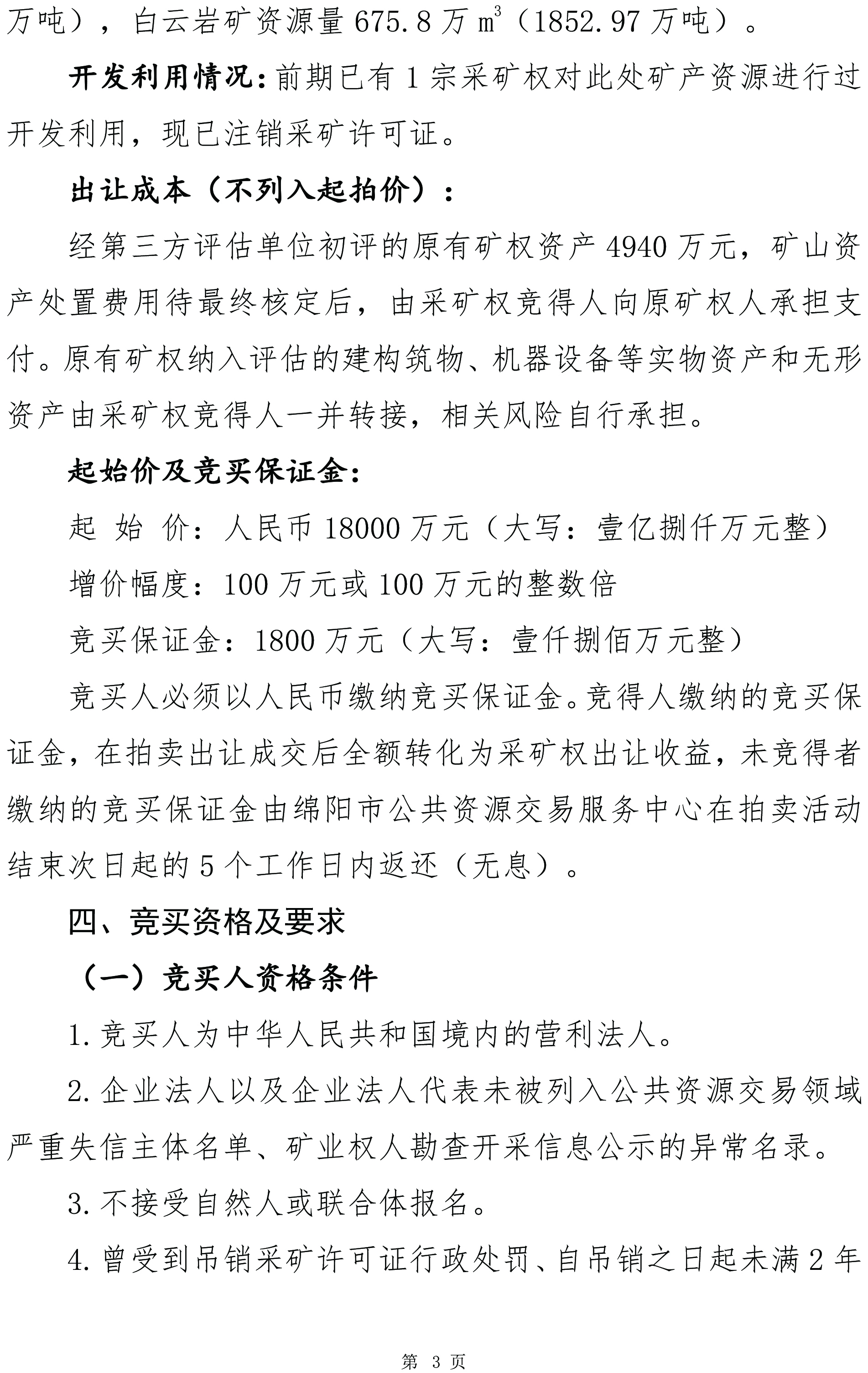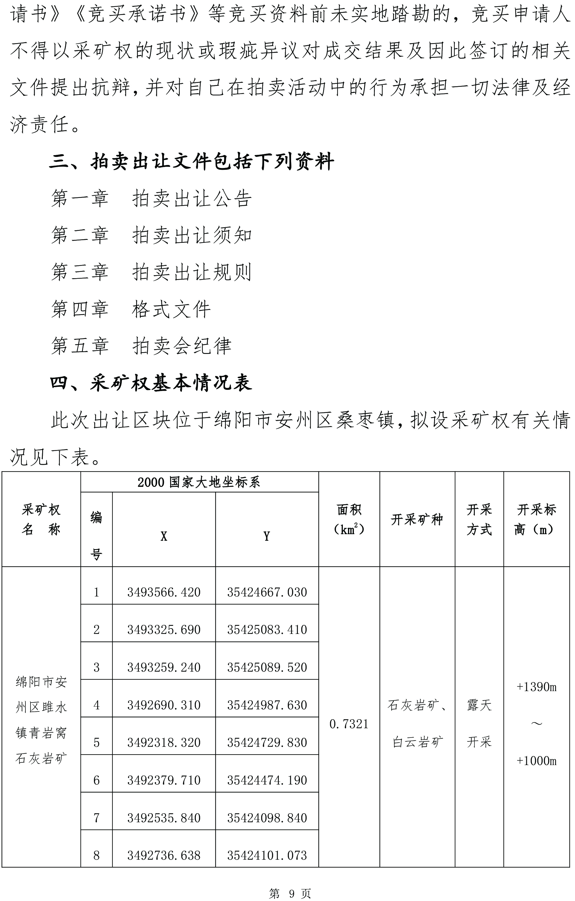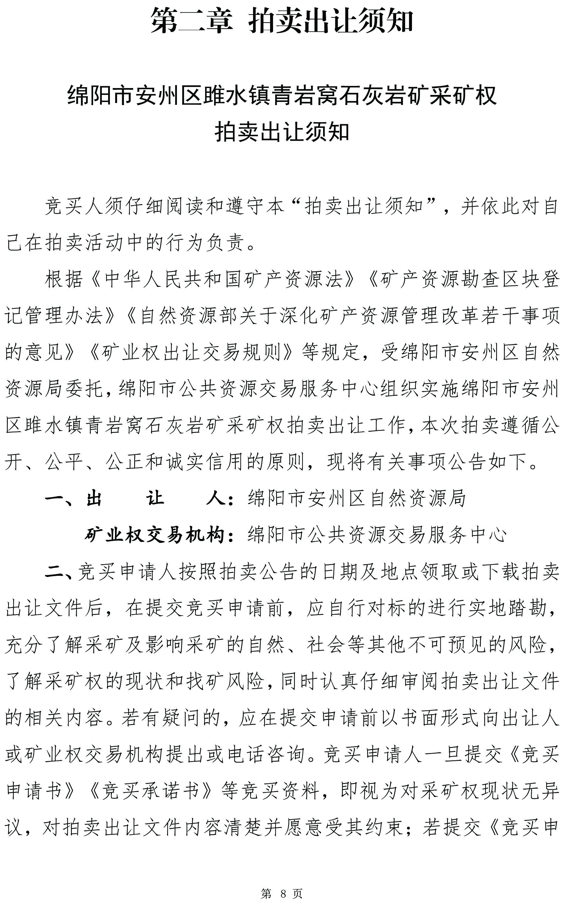 綿陽市安州區(qū)雎水鎮(zhèn)青巖窩石灰?guī)r礦拍賣出讓文件(編號:綿礦招拍掛〔2025〕3號)