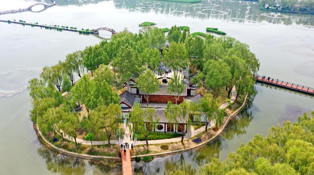 坐落于白洋淀荷花大觀園的荷花淀派文學(xué)館(無(wú)人機(jī)照片)。(雄安新區(qū)宣傳網(wǎng)信局供圖)