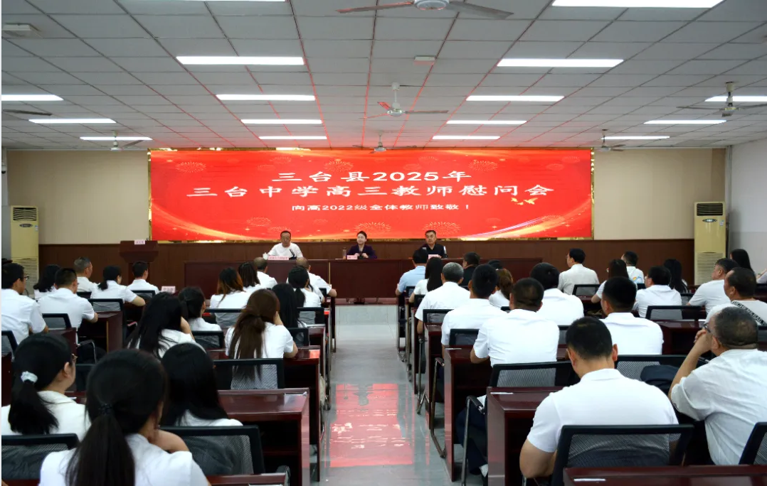 為了凝聚高三教師團隊戰(zhàn)斗力,踐行以生為本、尊師重教的理念,4月28日,三臺縣縣委、縣政府、縣教體局領(lǐng)導(dǎo)一行赴三臺中學(xué),開展了以“溫情備考 決勝高考”為主題的高三教師暖心慰問活動。三臺縣委常委、宣傳部部長、縣委教育工委書記鐘蓓,縣委教育工委常務(wù)副書記、縣教體局黨組書記、局長嚴剛出席活動??h教體局黨組成員胡運軍主持會議。