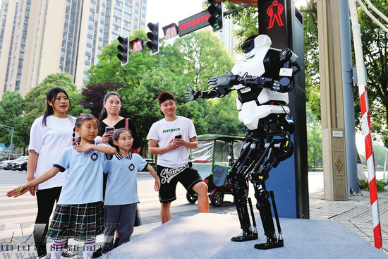 機器人在九洲大道做交通引導(dǎo)員?。ㄓ浾?陳冬冬 攝)