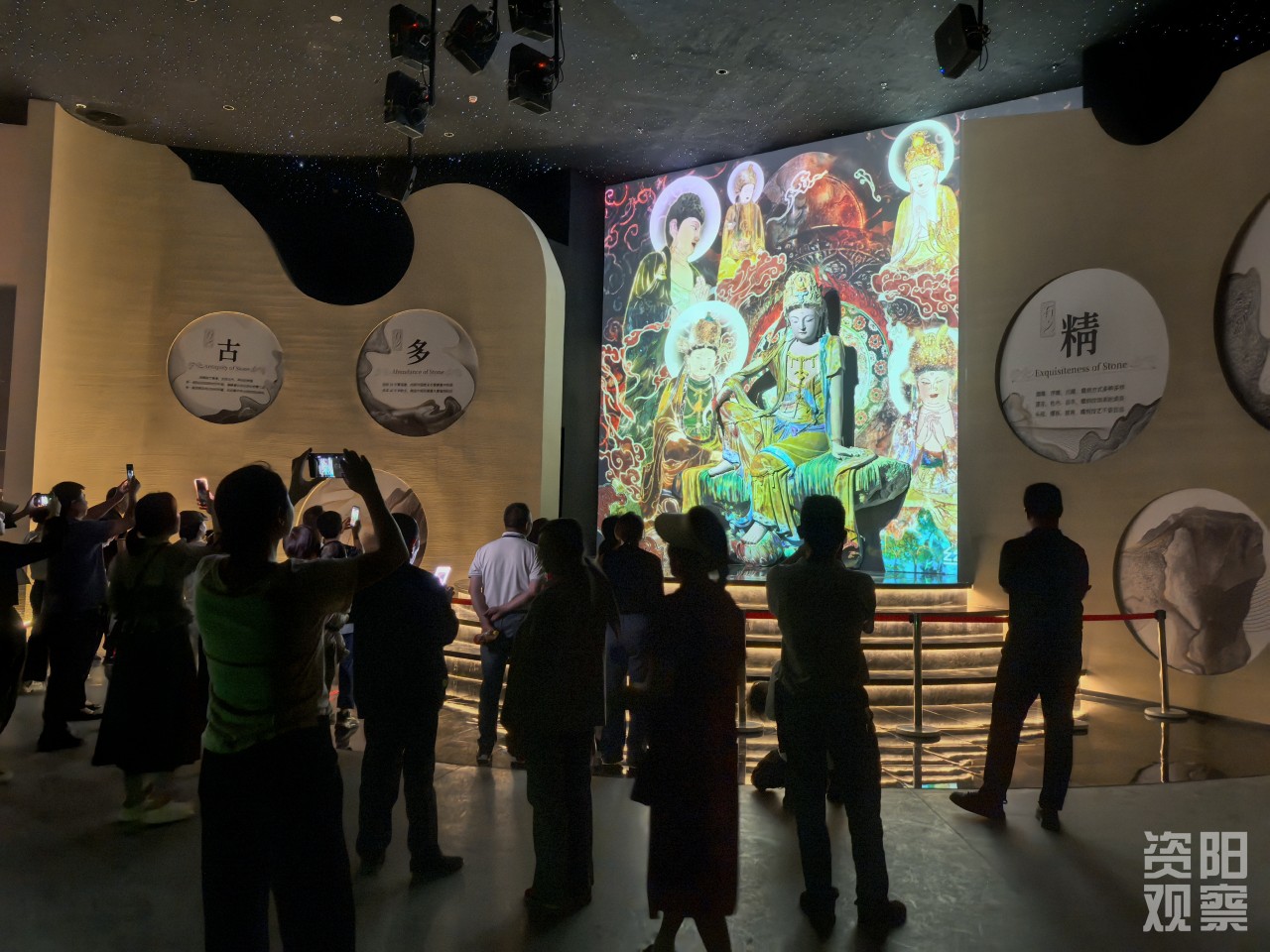 游客在“時(shí)光回溯”體感系統(tǒng)前比對(duì)手印,即可觸發(fā)佛像“自述”前世今生;裸眼3D區(qū)的腦機(jī)設(shè)備,能將腦海中的佛像具象化呈現(xiàn)……在安岳石窟數(shù)字展示中心內(nèi),10萬(wàn)尊石刻在聲光電技術(shù)中“復(fù)活”,無(wú)數(shù)游客與盛唐工匠來(lái)了一場(chǎng)“跨時(shí)空對(duì)話(huà)”。