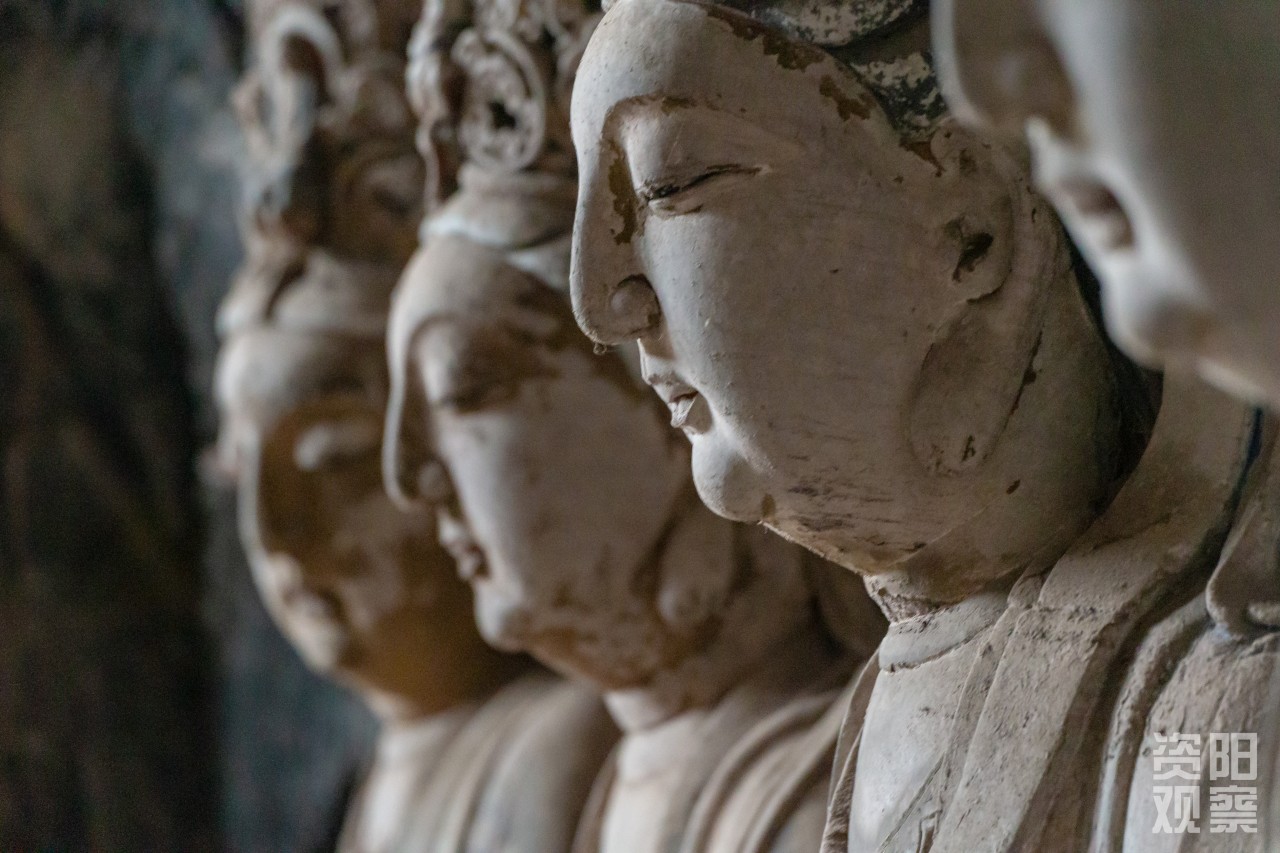 唐宋年間,北方石窟藝術(shù)南下“開(kāi)分店”,古安岳人直接開(kāi)啟“造像內(nèi)卷”模式:十里一庵、五里一廟,全縣200多處石窟、10萬(wàn)尊造像星羅棋布,摩崖佛經(jīng)經(jīng)文多達(dá)40余萬(wàn)字,石窟總數(shù)和摩崖造像數(shù)量穩(wěn)居全省第一、全國(guó)第二。