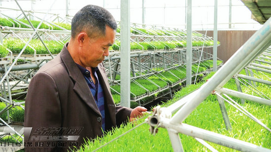 在合作社的育苗中心內(nèi),一個個已經(jīng)進(jìn)入育秧環(huán)節(jié)的秧盤在機(jī)器操控下勻速旋轉(zhuǎn)接受光照和噴灌,嫩綠的秧苗已經(jīng)有一指長。這種“工廠化”的育秧方式,大大提高了育秧效率。負(fù)責(zé)人楊興富表示,合作社今年育秧采取兩種方式,工廠化育秧和露天育秧。工廠化育秧時前期溫度低,可以保溫、保濕,后期露天育秧,包括是要接茬油菜地,要晚一點(diǎn),外面溫度已經(jīng)夠了,效果要好一些。