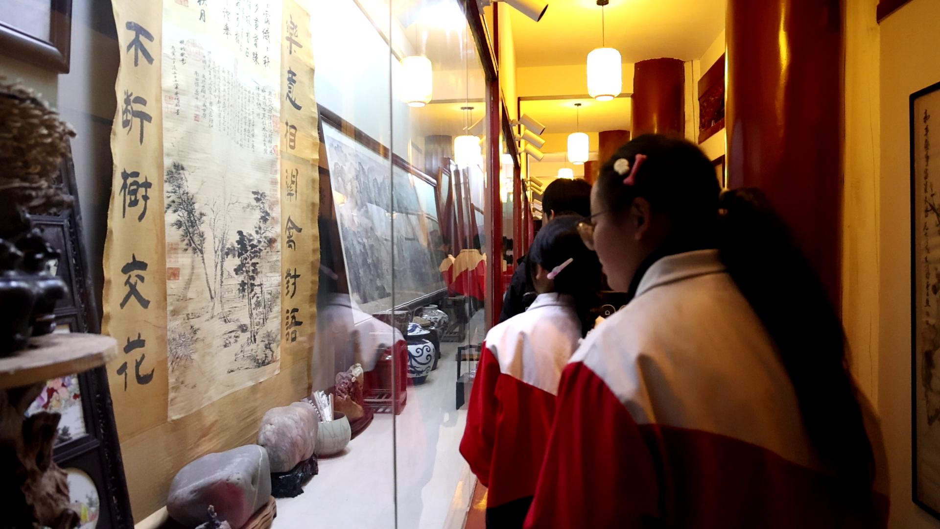 大英縣天保中學(xué)學(xué)生們參觀金石書(shū)畫(huà)博物館。