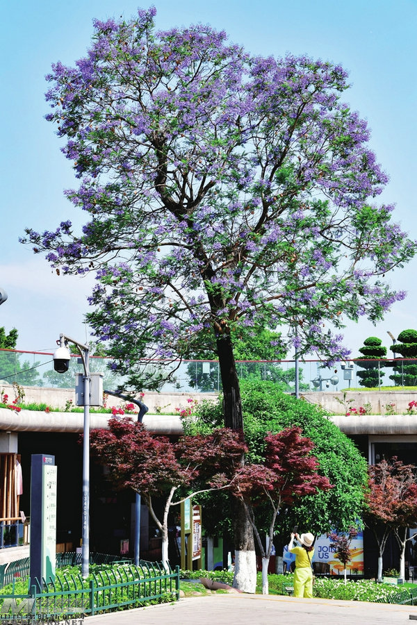 淺夏時節(jié)的綿陽,草木繁茂,花香氤氳,位于城市中心的三江湖國家濕地公園,風景如畫,天藍水綠,湖光瀲滟,吸引了不少市民游客漫步親水棧道,打卡拍照。湖畔,兩棵高大粗壯的藍花楹樹開得正艷,一朵朵藍紫色的花朵簇擁在枝頭,為這座城市增添了一抹浪漫而迷人的色彩。