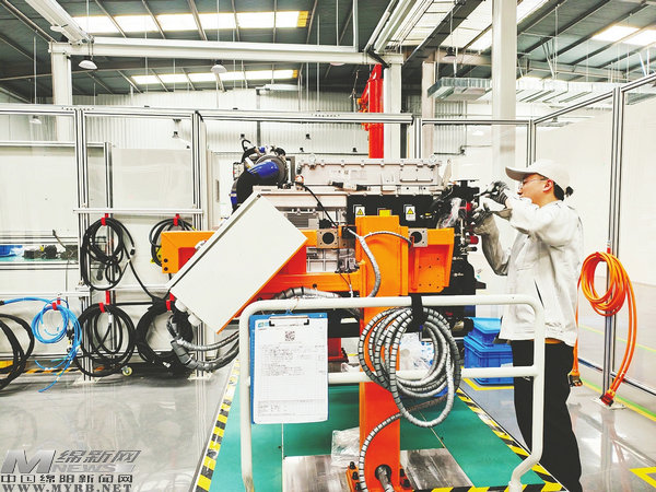 綿陽新聞網(wǎng)訊 機(jī)械手抓取、上料、裝配,AGV在運(yùn)輸路線上來回穿梭、運(yùn)料……近日,記者走進(jìn)錦宜(綿陽)氫能科技有限公司(以下簡(jiǎn)稱“錦宜氫能”)生產(chǎn)車間看到,氫燃料電池系統(tǒng)自動(dòng)化裝配線正在試生產(chǎn)運(yùn)行,現(xiàn)場(chǎng)人機(jī)配合,各項(xiàng)生產(chǎn)操作參數(shù)被調(diào)試至最佳,公司管理人員一遍又一遍驗(yàn)證試運(yùn)行效果。