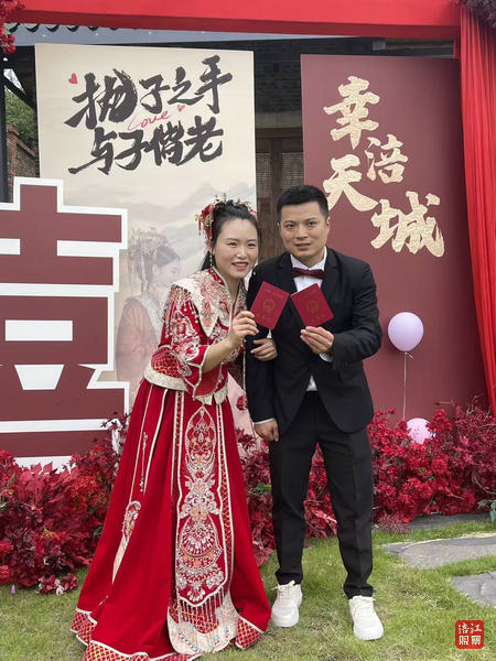 “十年的相識相戀,終于在今天修成正果。幸福不在排場大小,而在彼此鼓勵,相互進步,共同扶持的初心。我會用每一天的陪伴,讓‘執(zhí)子之手’的承諾化作煙火人間的溫暖。”新人代表任先生及妻子小雪的表白深情款款。新人的故事引發(fā)共鳴,現(xiàn)場掌聲與祝福聲此起彼伏,讓傳統(tǒng)禮儀與現(xiàn)代愛情觀在交融中綻放光彩。