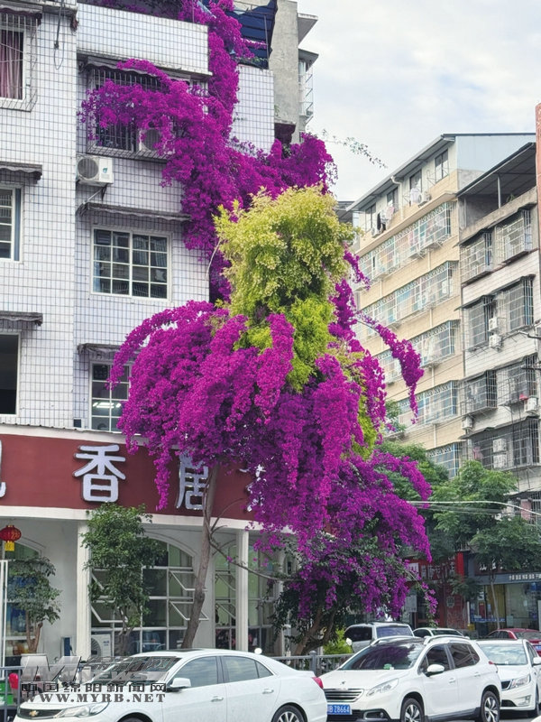 四季入鏡,皆是流動的畫卷。早春時節(jié),石橋鋪火炬公園外道路兩旁,櫻花和玉蘭競相開放。四月,南山中學外的七里香和涪城區(qū)法院對面的薔薇花墻迎來最絢爛的時刻。五月來臨,路邊隨處可遇的三角梅如瀑布般垂落,市花月季盡情綻放,紅綠交錯間將整個城市裝點得更加生機勃勃。