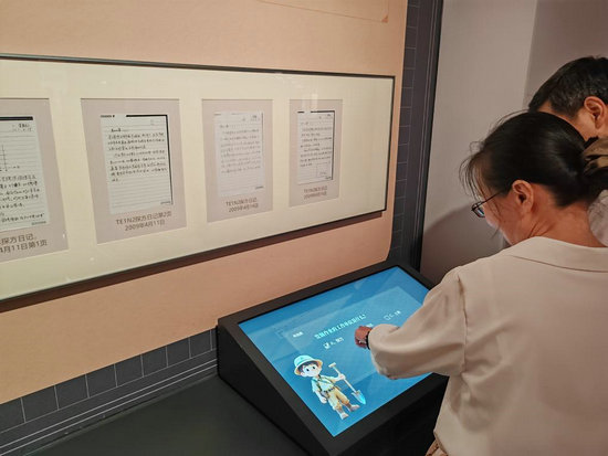 18日下午,觀眾在玉架山考古博物館互動屏上回答問題,學(xué)習(xí)考古知識。新華社記者 馮源 攝